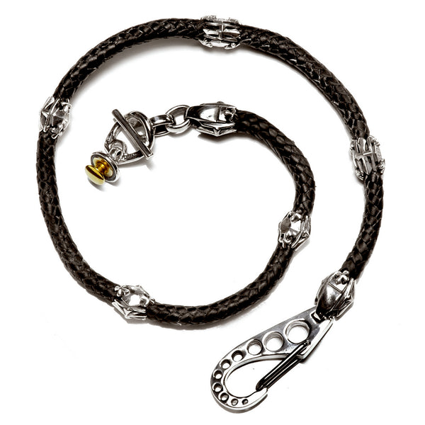 Leather Braided Wallet Chain with Cross Beads